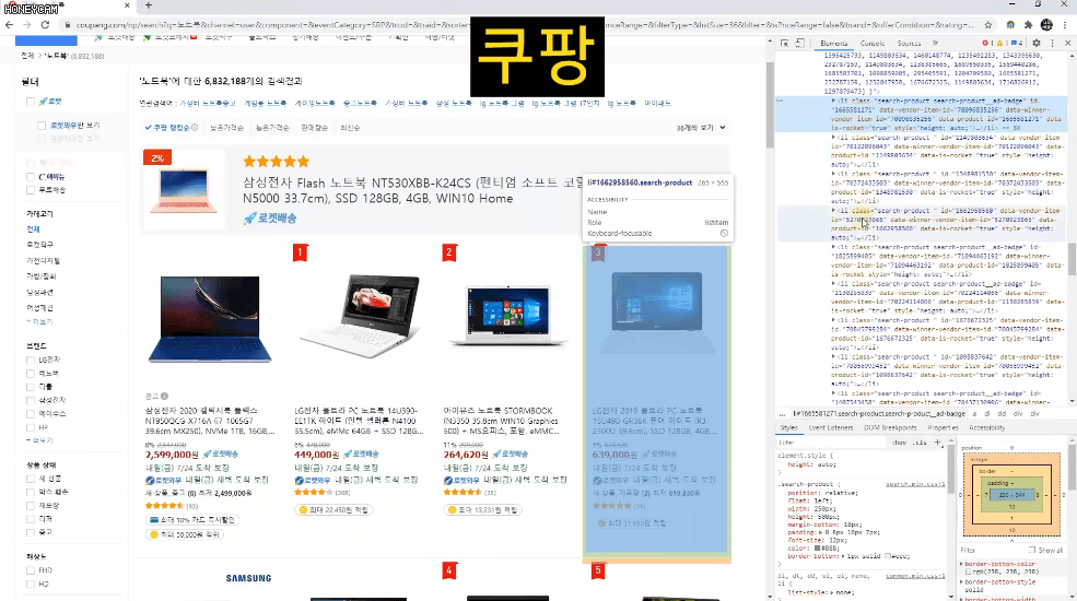 쿠팡 같은 쇼핑몰에서 딱 내가 원하는 조건에 맞는 상품만 링크와 함께 가져온다던지