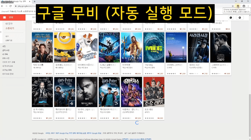 가령 구글 무비 페이지에서 인기차트 영화 중 현재 할인중인 영화 정보만 가져오고 싶은데 여기는 사용자가 스크롤을 내려야만 다음 목록이 불러와집니다.