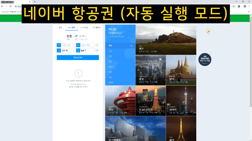 또는 네이버 항공권은 내가 원하는 일정을 입력하고 항공권 조회 버튼을 클릭하면 한참동안 로딩을 하고 나서 목록이 나타나기도 하지요.