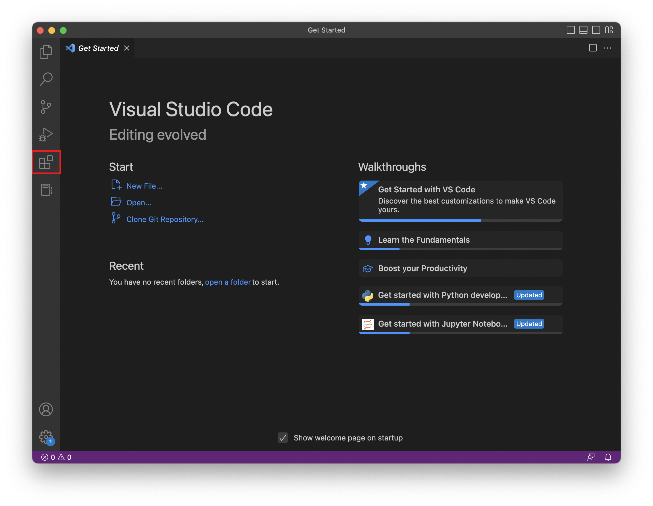 4. 확장 프로그램 설치를 위해 좌측에서 Extensions 탭을 클릭합니다.