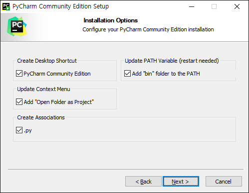 - Create Associations : 확장자가 .py 인 파일과 연결해줍니다.