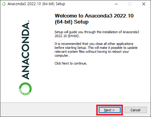 2. 다운로드 완료된 설치 파일을 실행하고, Next 버튼을 클릭합니다.
