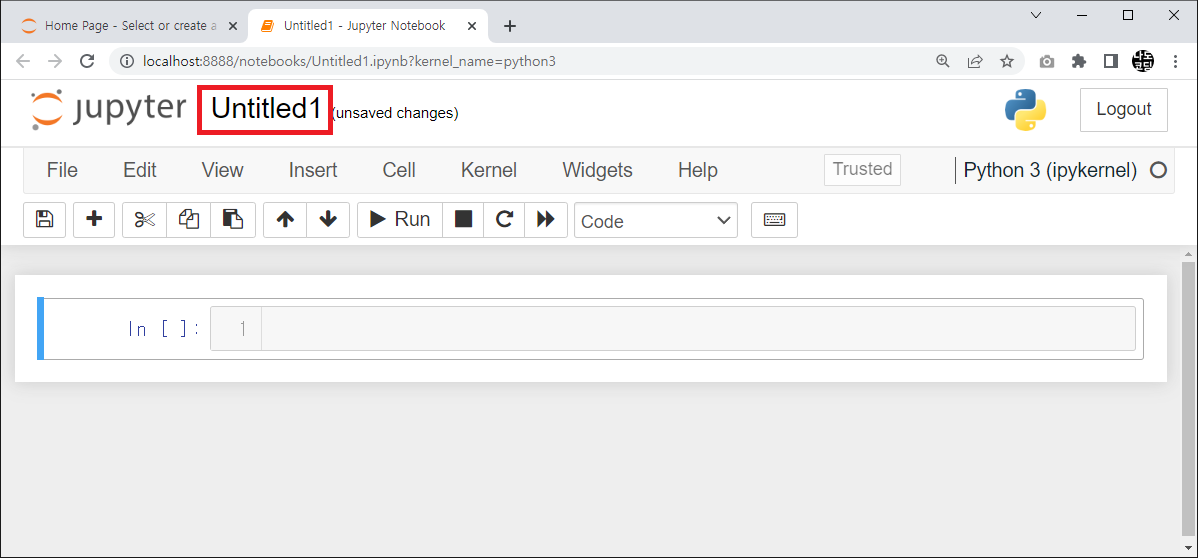 15. 파랗게 표시되어 있는 코드 셀에 아래와 같이 코드를 입력 후 Run 버튼을 클릭합니다.