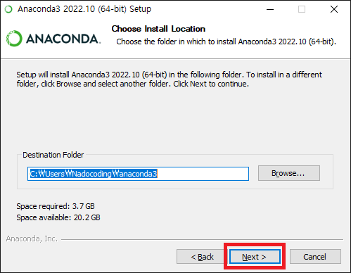 5. 설치 경로를 지정하고 Next 를 클릭합니다.