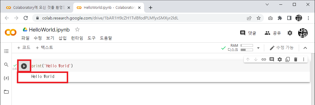 이제 여러분은 구글 코랩 (Google Colab) 을 통해 파이썬 개발을 하실 수 있게 되었습니다.