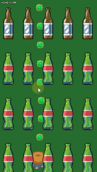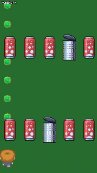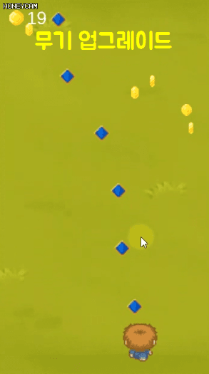 쓰레기는 종류마다 체력이 다르고 뒤로 갈수록 어려워지기 때문에 우리 주인공도 어느 기준을 만족하면 무기를 업그레이드할 수 있도록 해줍니다. 이를 위한 장치를 코인이라고 해볼게요. 하나의 쓰레기를 공격해서 분리수거 하고 나면 그 자리에서 코인이 이렇게 떨어집니다. 코인은 만들어질 때 살짝 화면 위로 올라왔다가 바닥으로 떨어지도록 해볼게요.