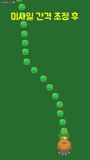 이제 쓰레기들을 해치울 미사일도 만들어볼까요? 미사일은 키보드를 누르거나 마우스를 클릭하지 않아도 게임이 플레이되는 동안 계속해서 쏘도록 하겠습니다. 다만 미사일 간격을 적당히 조정해주지 않으면 너----무 많이 쏴서 주인공이 거의 끝판 대장급으로 강력해질 수가 있습니다.