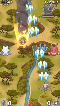 이 게임은 한때 애니팡이라는 게임과 함께 정말 많은 분들이 즐겼던 드래곤 플라이트인데요. 과거 오락실에서 즐기던 비행기 게임과 크게 다르지 않습니다. 갤러그처럼 주인공을 좌우로 움직이며 하늘에서 내려오는 적 (드래곤) 을 무찌르며 나아가는 형태에요.