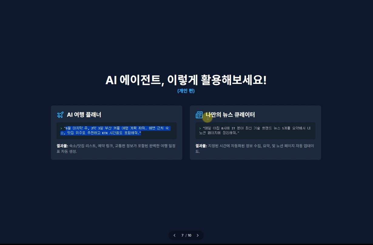 - “매일 아침 9시에 주요 AI 뉴스 요약을 이메일로 보내줘”