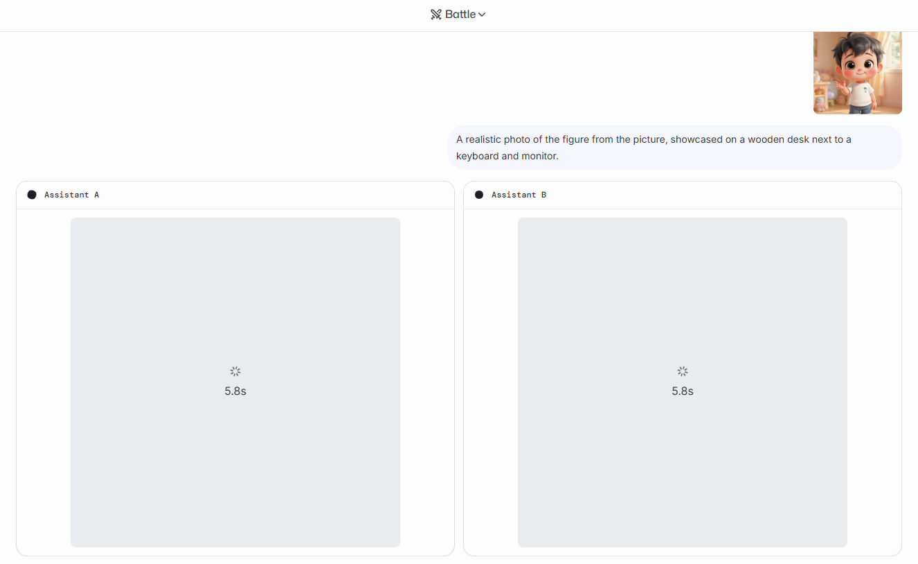 3) 랜덤으로 선택된 2개의 이미지 생성 모델이 작업을 수행합니다.