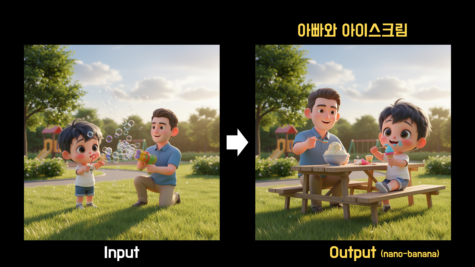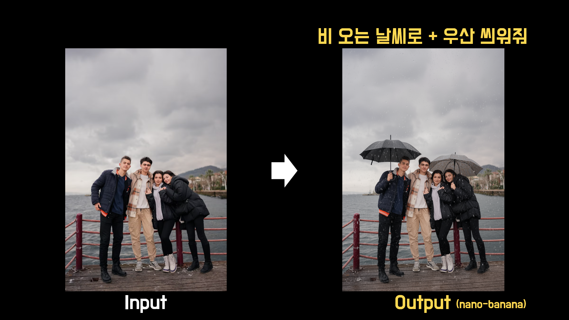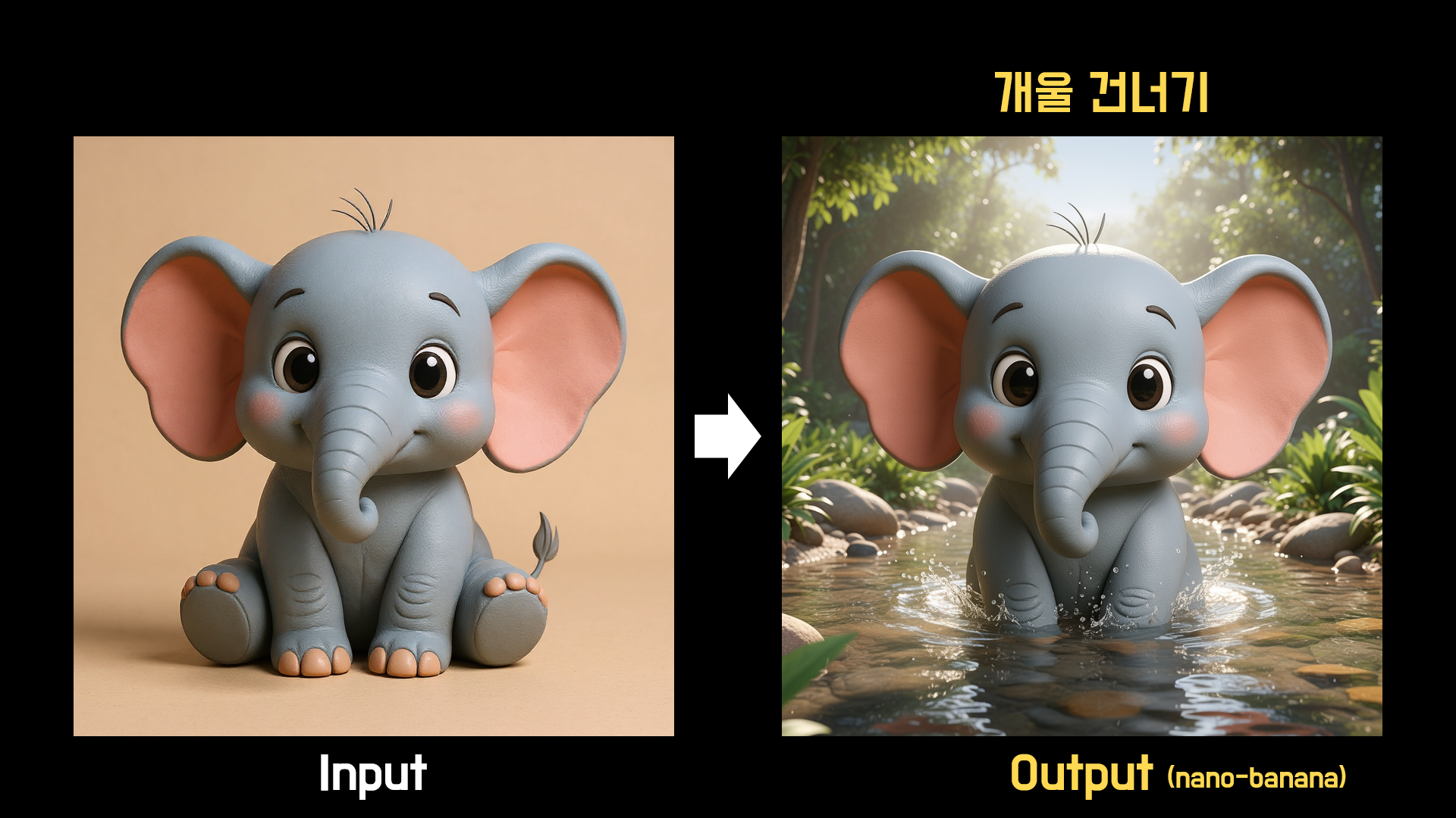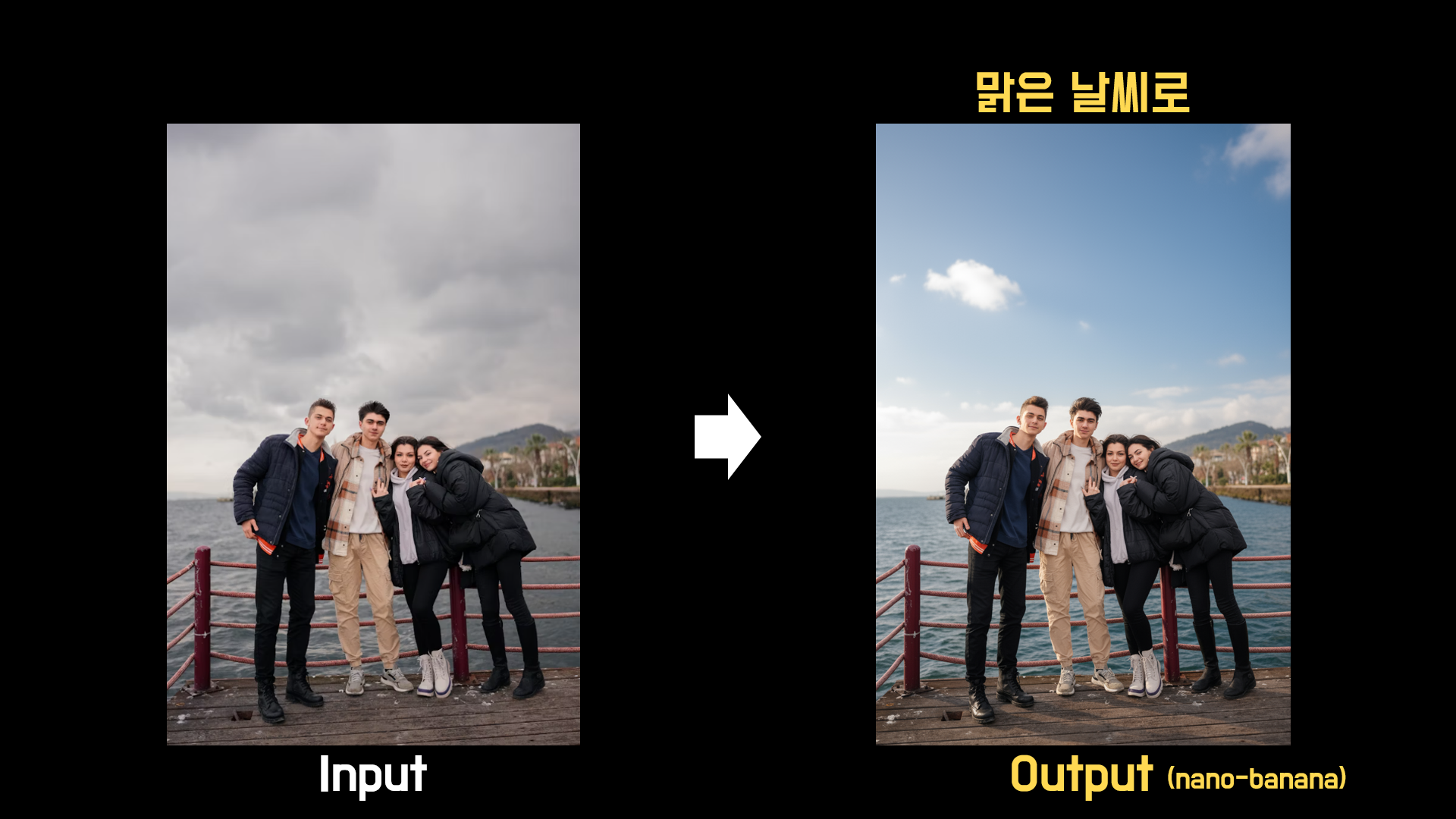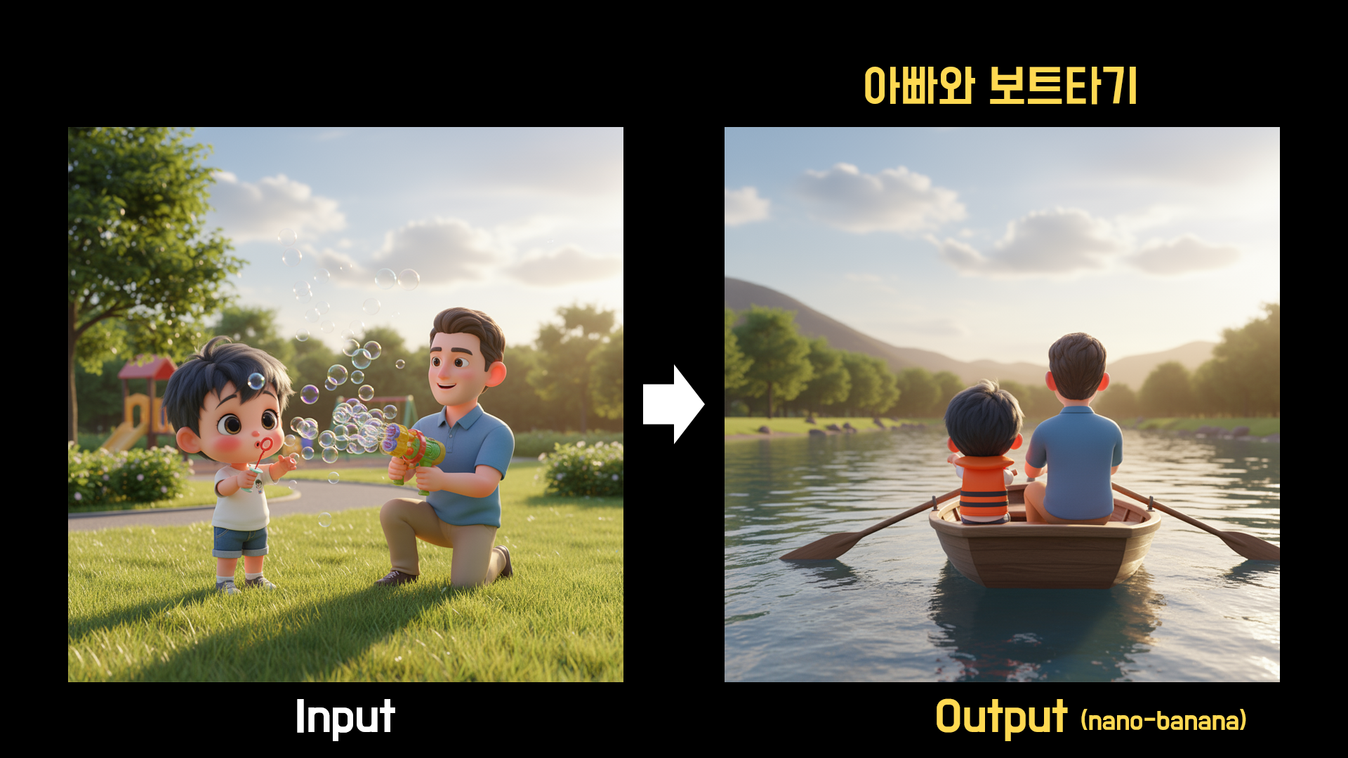 왼쪽이 입력 이미지, 오른쪽이 나노 바나나 모델이 생성한 이미지입니다.