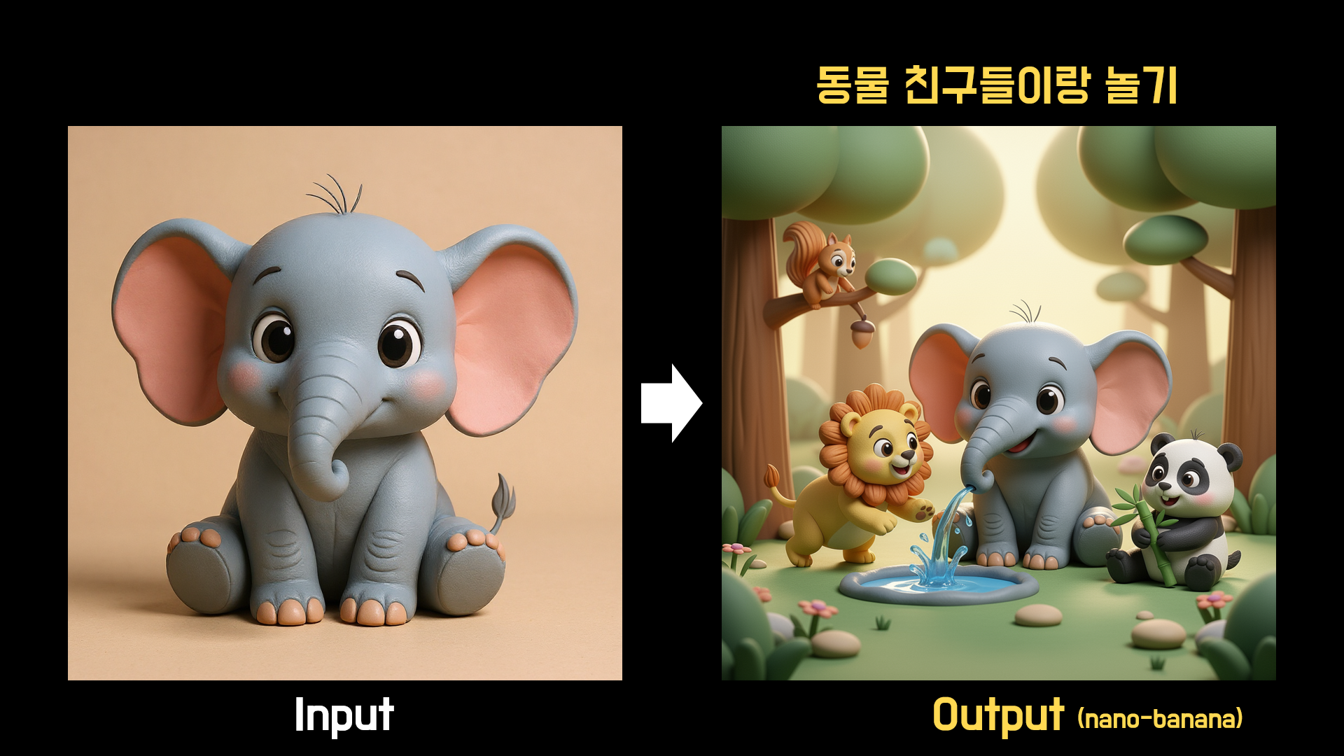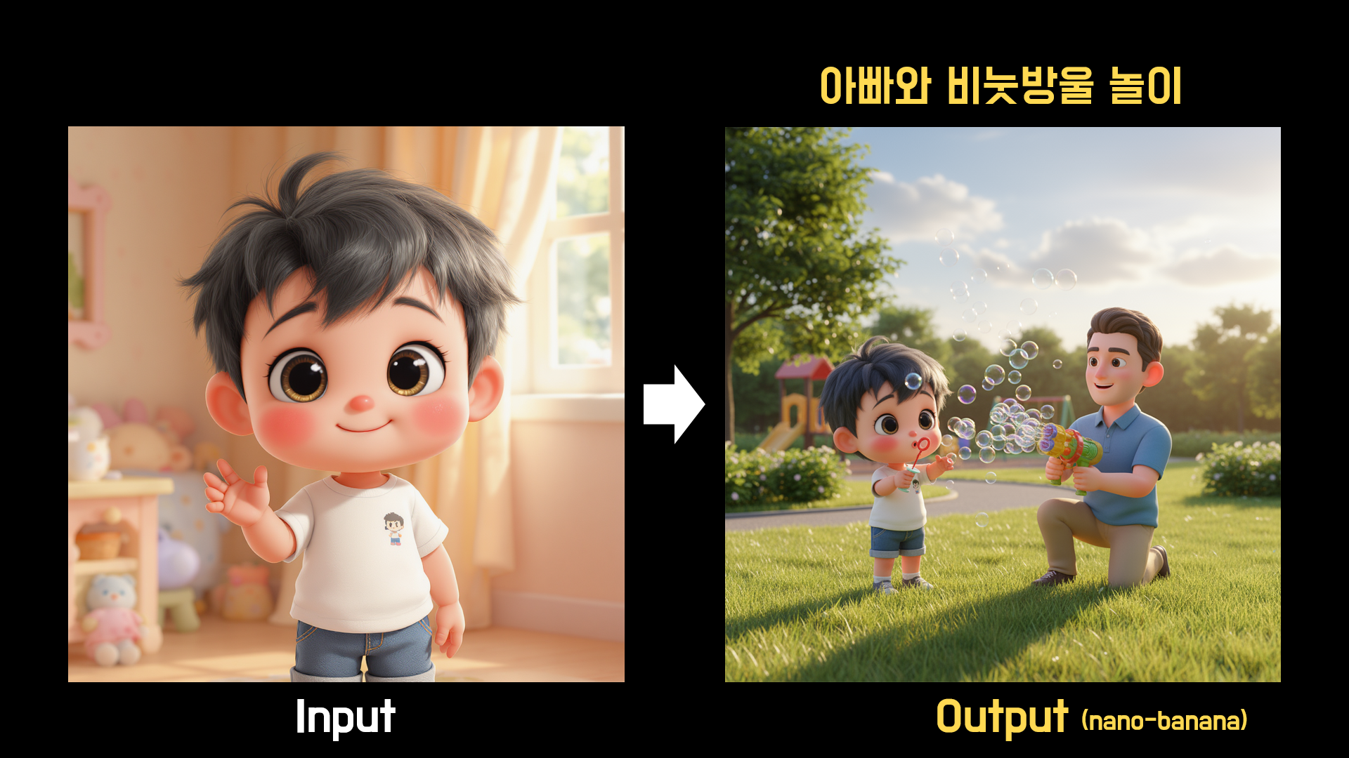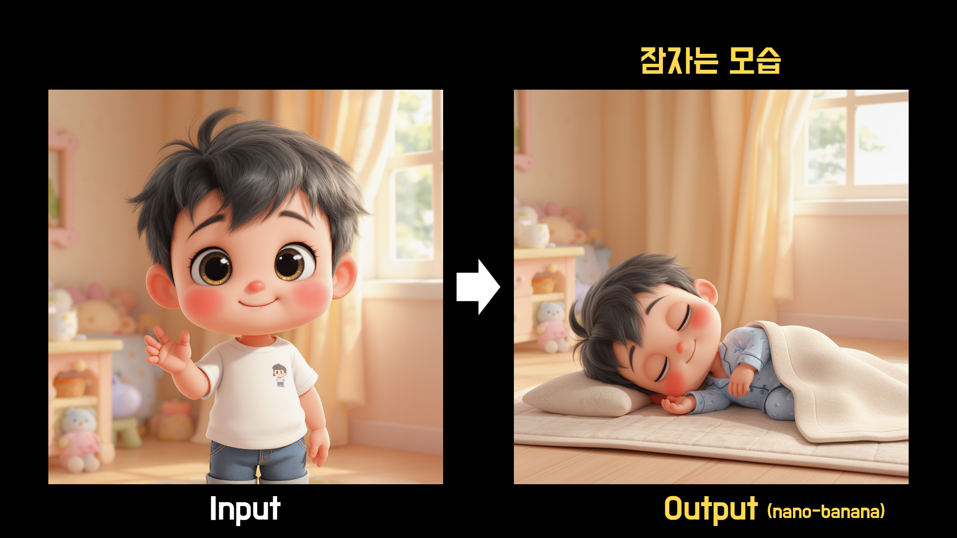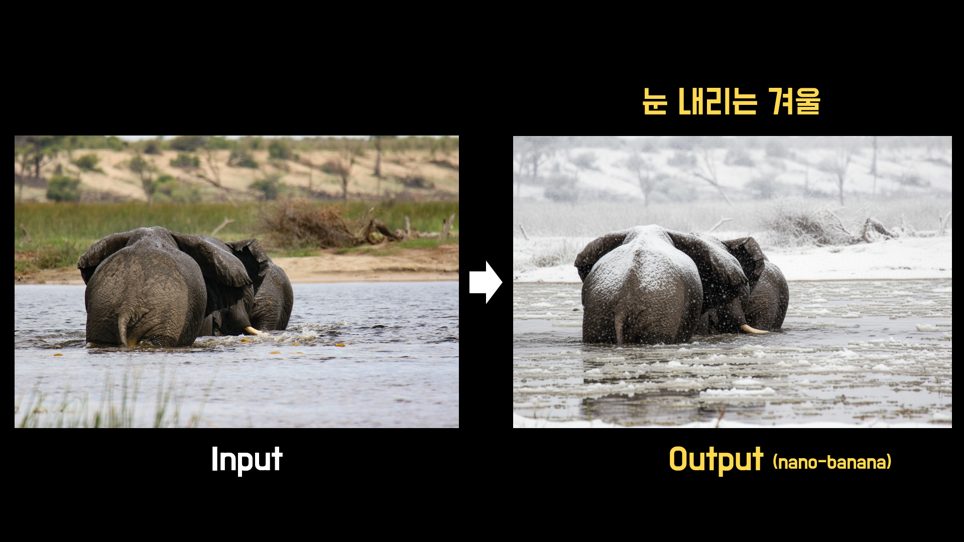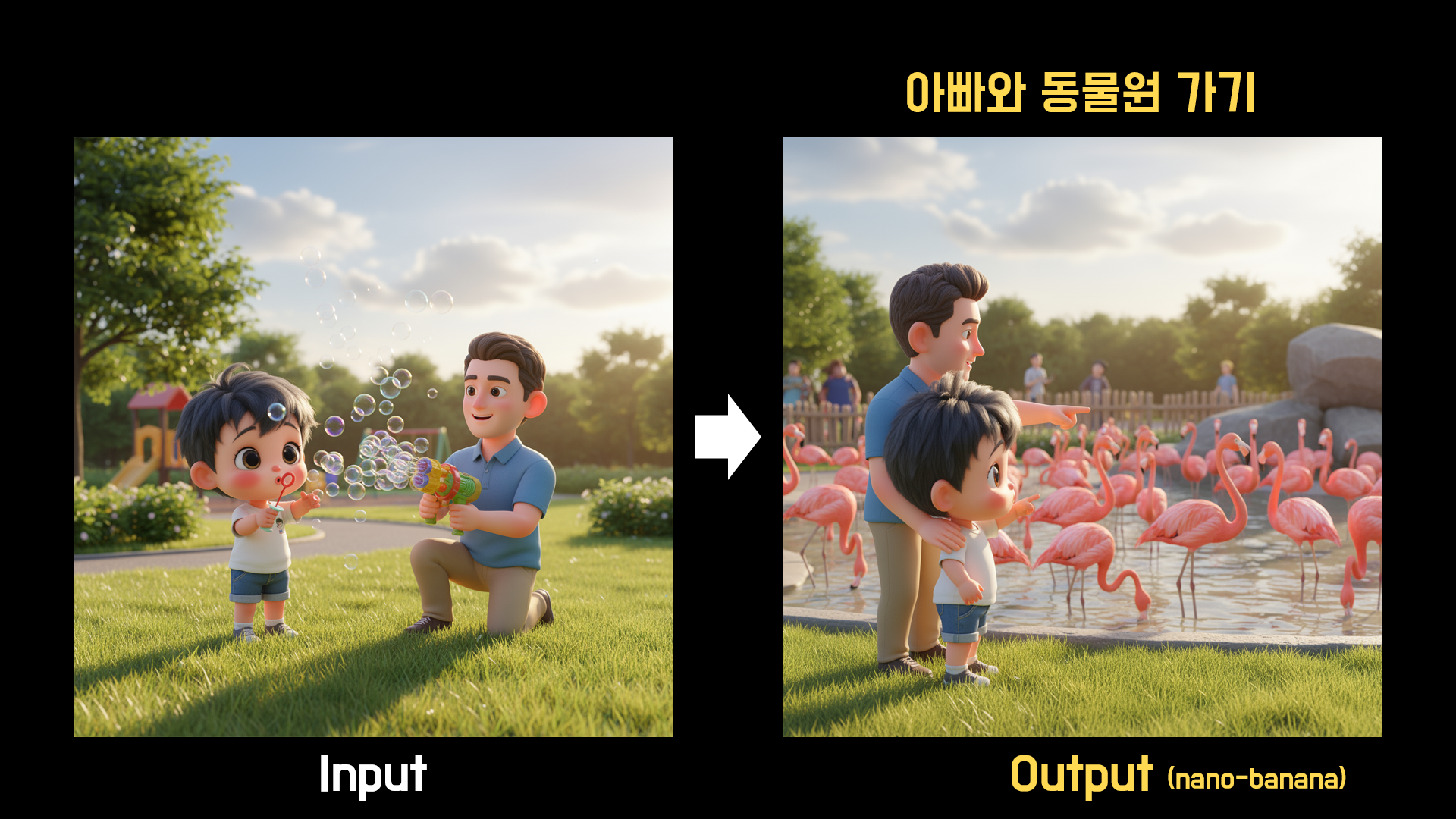 왼쪽이 입력 이미지, 오른쪽이 나노 바나나 모델이 생성한 이미지입니다.