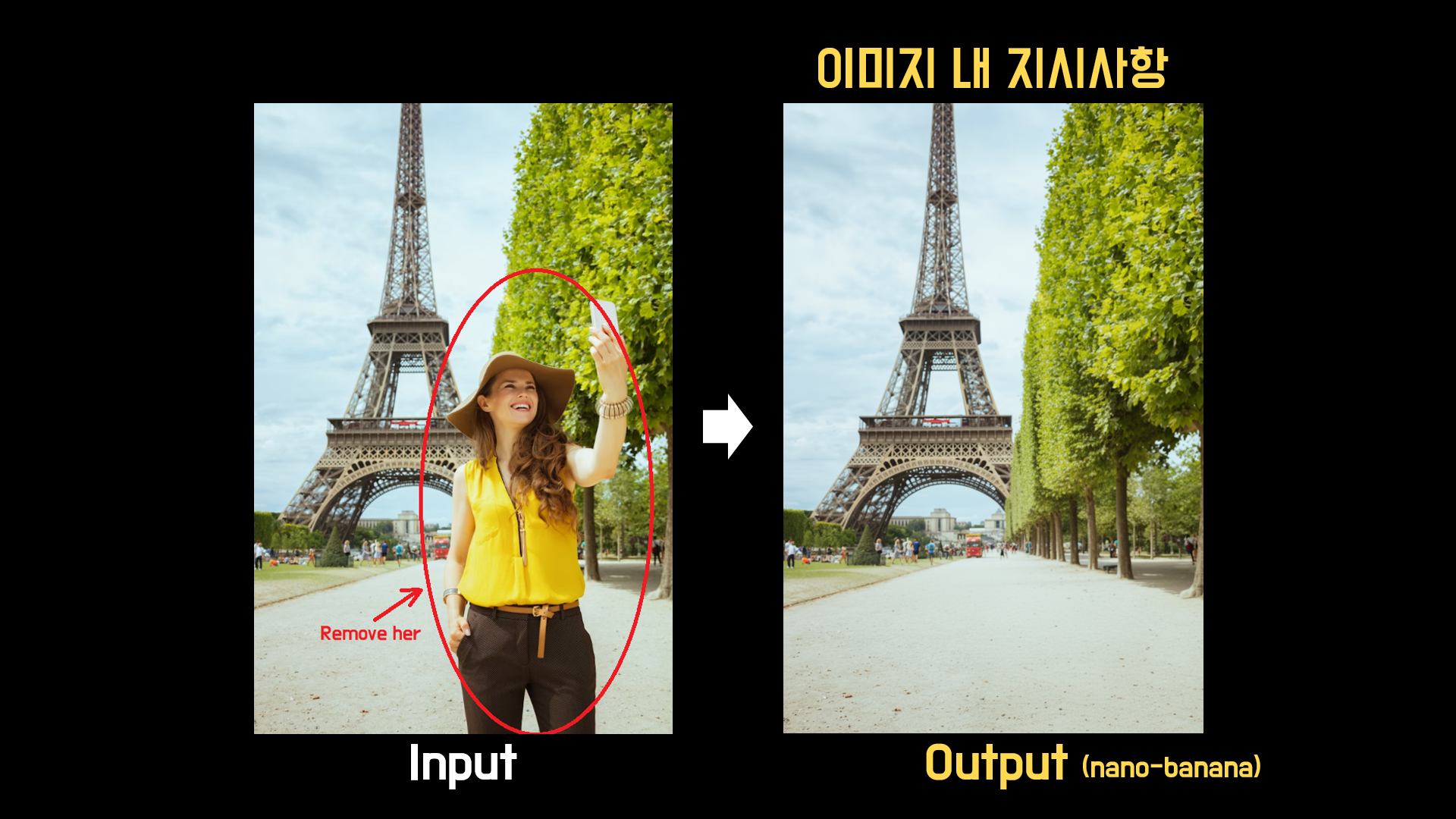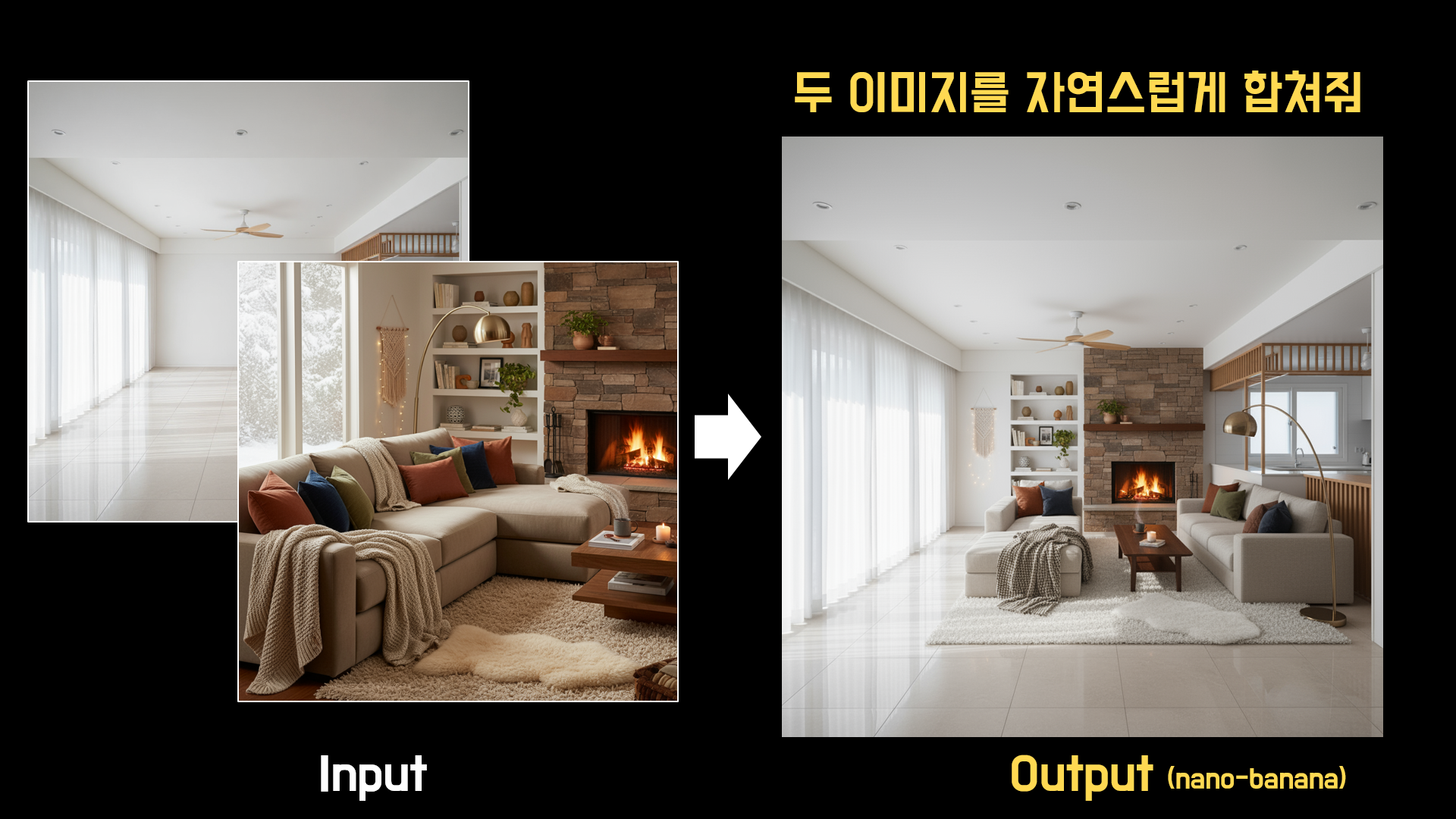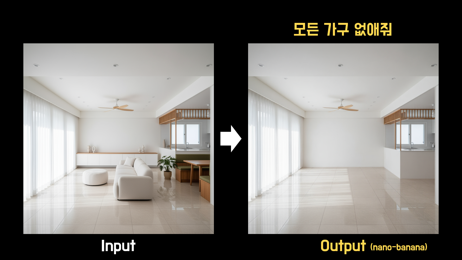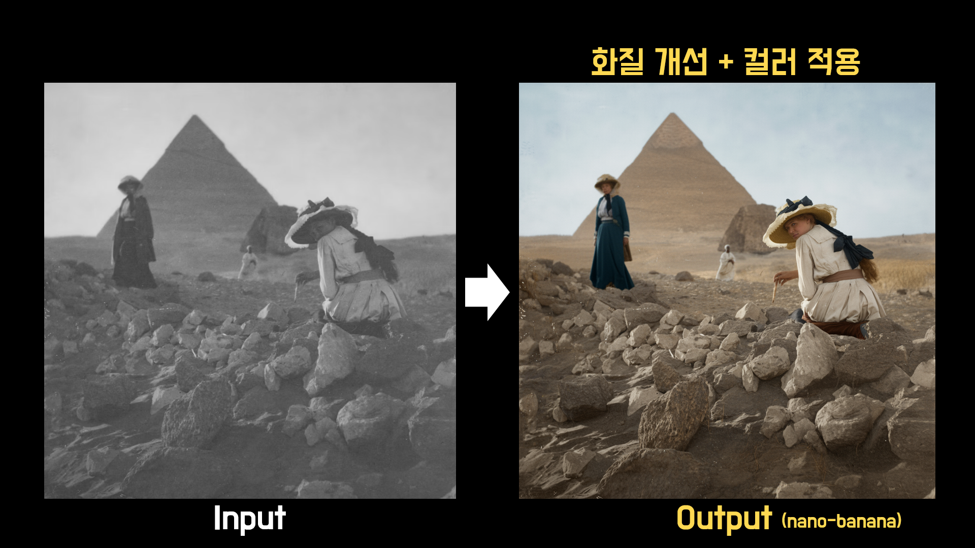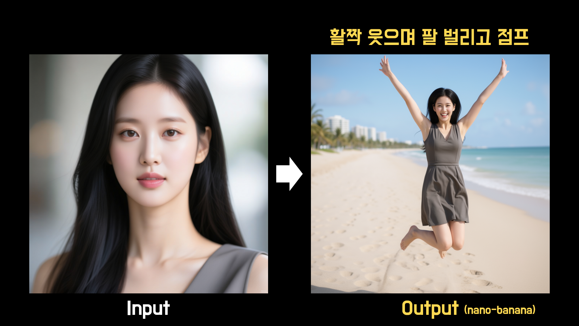 왼쪽이 입력 이미지, 오른쪽이 나노 바나나 모델이 생성한 이미지입니다.