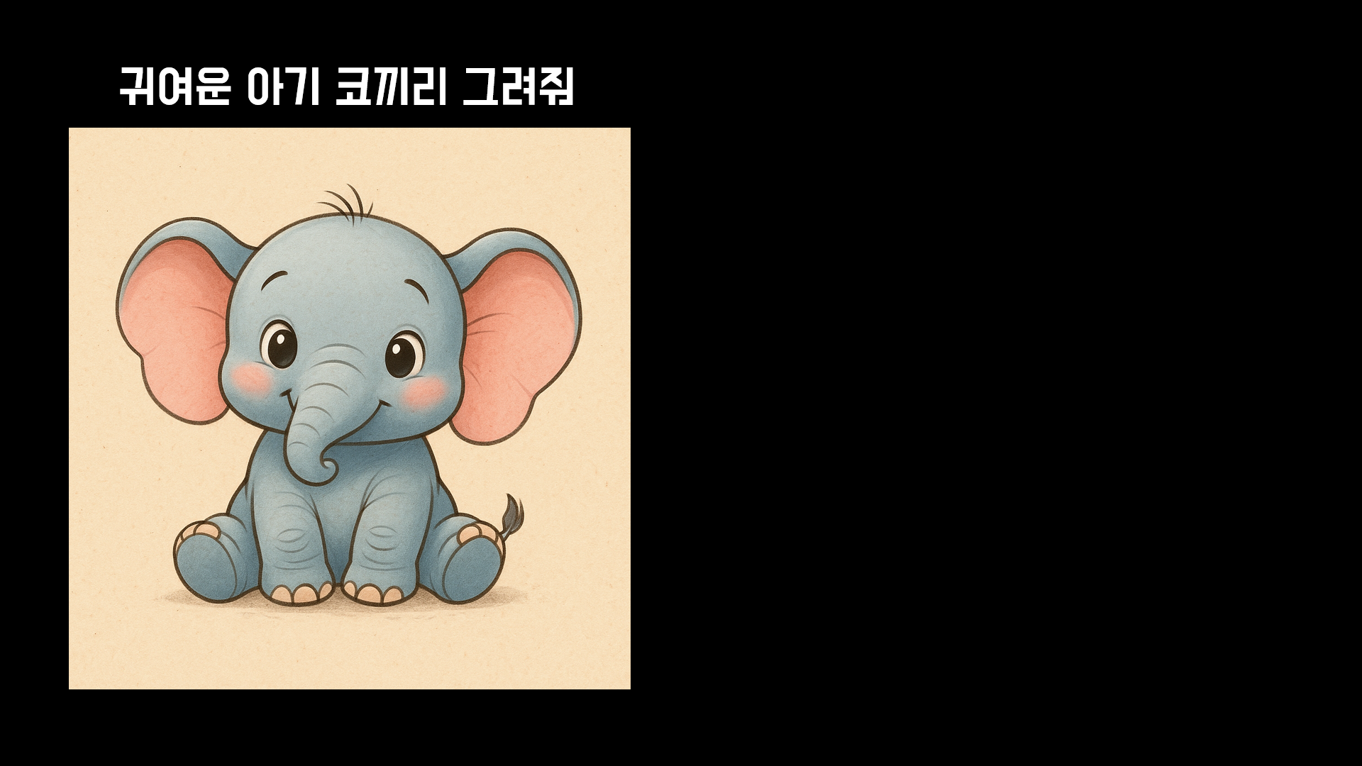 먼저 아래와 같이 귀여운 아기 코끼리를 그려달라고 부탁을 하였습니다.