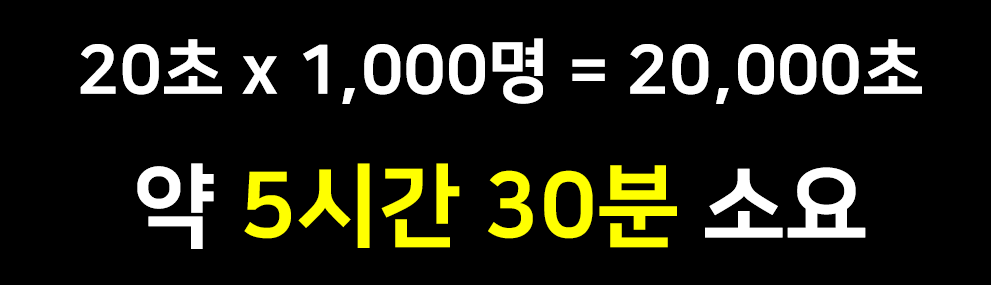 1명 이름표를 만드는데 20초만 걸린다고 해도 1,000명이면 무려 20,000 초, 약 5시간 30분이나 소요되는 작업입니다.