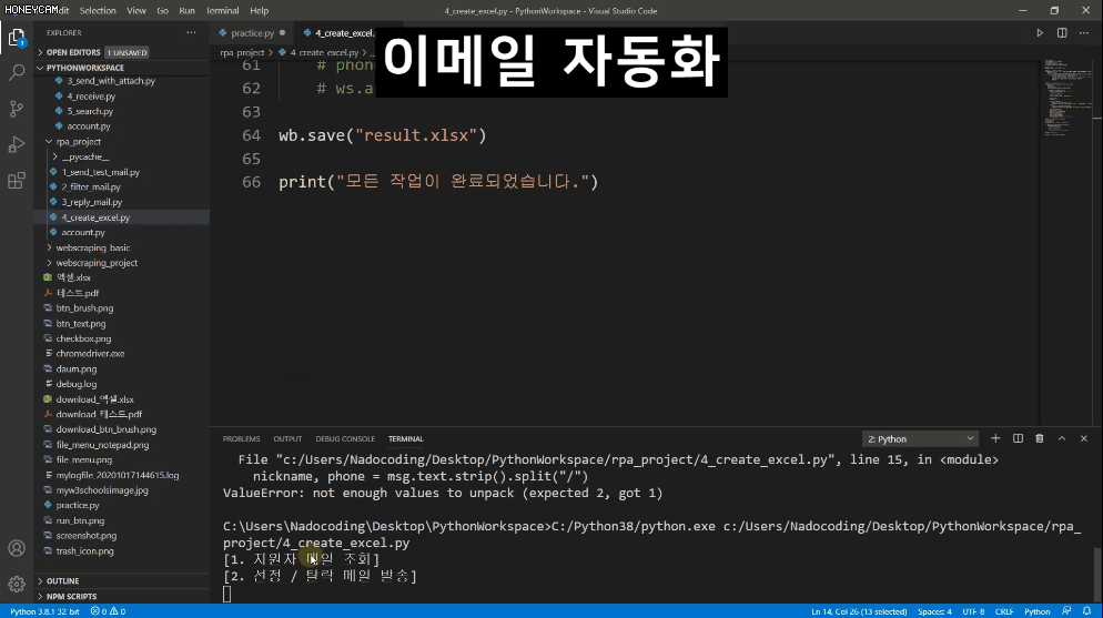 1. 엑셀 자동화 (openpyxl)