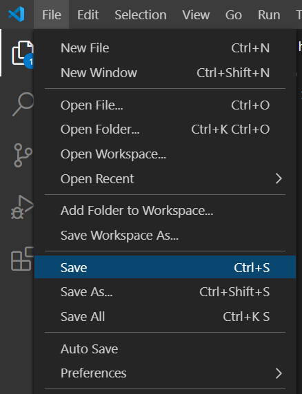 단축키 Ctrl + s 를 입력하여 저장하거나 파일 메뉴에서 Save 버튼을 클릭하여 저장할 수 있습니다.