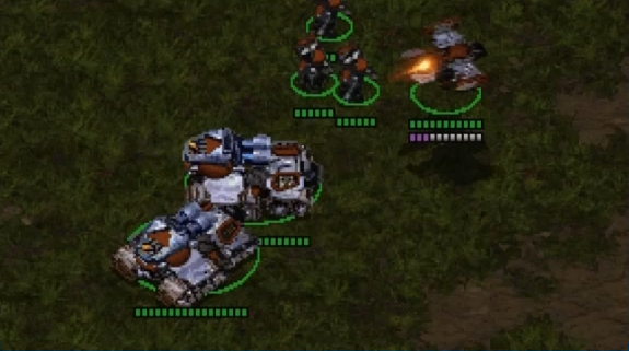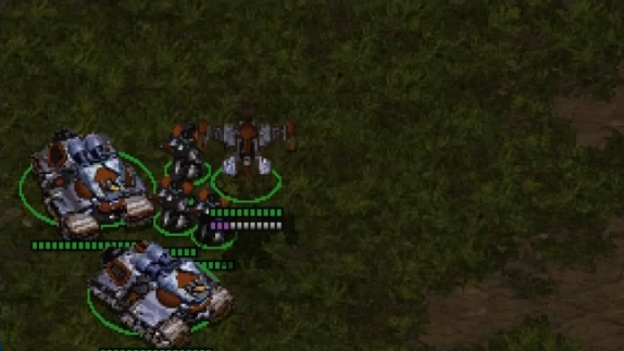 | 마린 : 스팀팩을 사용합니다. (HP 10 감소) 마린 : 스팀팩을 사용합니다. (HP 10 감소) 마린 : 스팀팩을 사용합니다. (HP 10 감소) 탱크 : 시즈모드로 전환합니다. 탱크 : 시즈모드를 해제합니다. 레이스 : 클로킹 모드 설정합니다. |